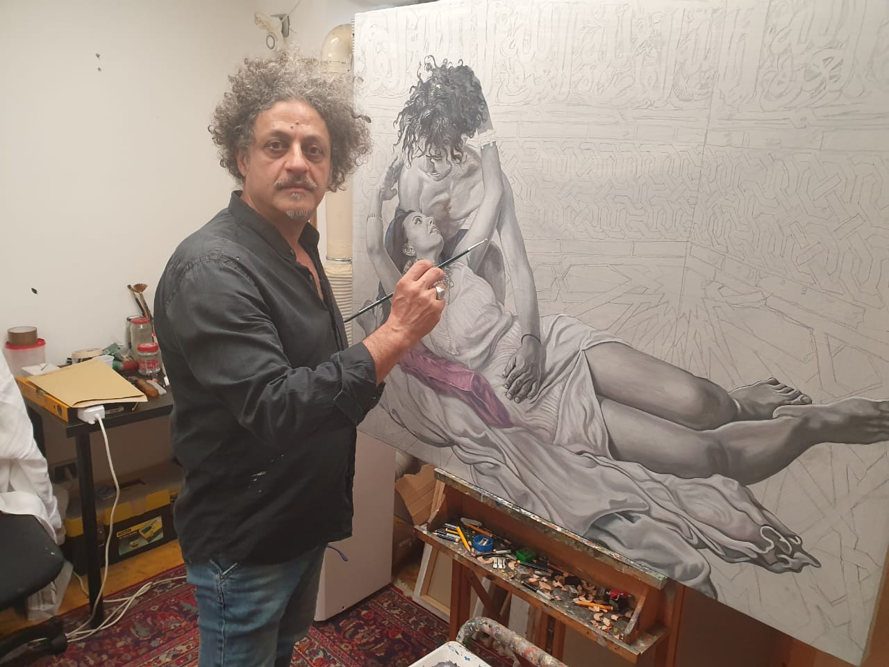 Essendo un pittore figurativo ho dovuto affrontare l’argomento della raffigurazione nella mia cultura di nascita quella dell’Islam. All’inizio del ‘900 altri artisti libanesi hanno studiato arte in Italia come Mustafa Farroukh riportando il bagalio pittorico figurativo in Libano dipingendo la tradizione del levante. Nel mio caso, i tempi sono diversi e più maturi per incidere concettualmente sulla storia dell’arte toccando l’argomento della figurazione da un punto di vista anche islamico. Io ho dichiarato da tempo e apertamente che faccio Ijtihad (studio ed interpretazione del Corano). Lo faccio da artista e da uomo libero, curioso e desideroso di conoscere l’Esistenza in profondità. La domanda che spesso mi è stata posta è quella del perché dipingo gli esseri umani!. La verità è che ho questo dono della pittura da quando ero piccolo. Adesso mi rendo conto che è importante che io dipinga gli esseri umani per chiarire che la religione vieta si l’idolatria ma non vieta l’arte e la bellezza. Molti continueranno a pensare che rappresentare gli esseri dotati di anima sia competere con la potenza divina creatrice, altri invece si renderanno conto che non è una competizione ma piuttosto una contemplazione della bellezza e dell’amore divino. Devo dire che negli ultimi anni sono entrato a far parte di collezioni private del mondo arabo in Libano e in Bahrein oltre alle già consolidate negli Usa ed in Europa.