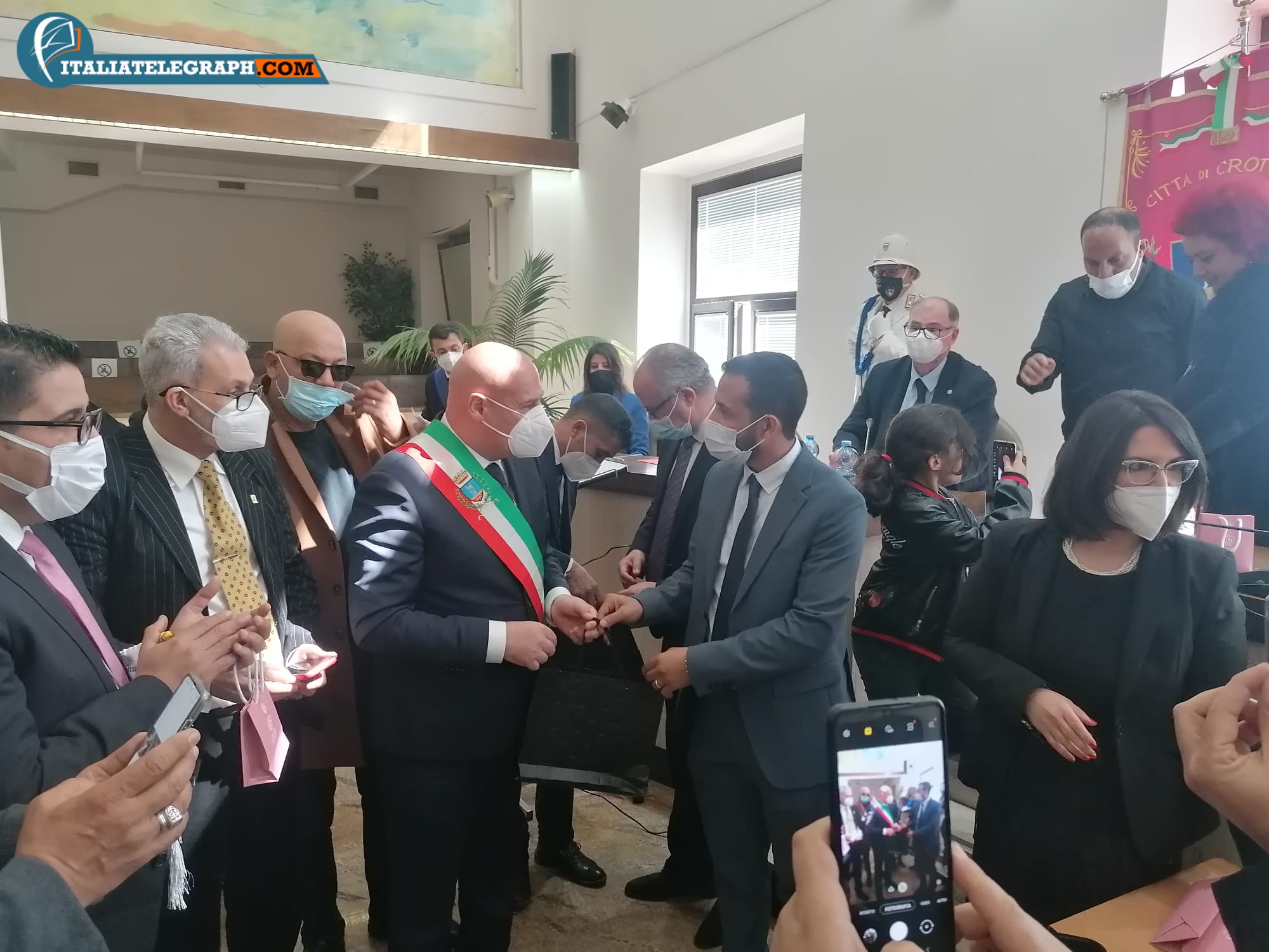 Presenti anche l’Assessore Fabio Manica, Presidente della Camera di Commercio di Crotone, Alvio Pugliese, il Vice Governatore Roberta Molli, e le autorità civili e militari, oltre a rappresentanti di associazioni marocchine affiliate al Forum dei Marocchini di Calabria guidato da Ahmed Berraou e alcuni marocchini cittadini residenti nel sud Italia.