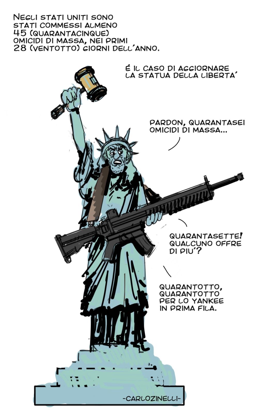 A causa di un’interpretazione assurda (quanto fallace ed incorretta) del secondo emendamento, negli USA si dà spazio ad una strage che avviene su base pressochè quotidiana, in un paese che scivola sempre di più nella spirale della disuguaglianza. Fermate questa follia!