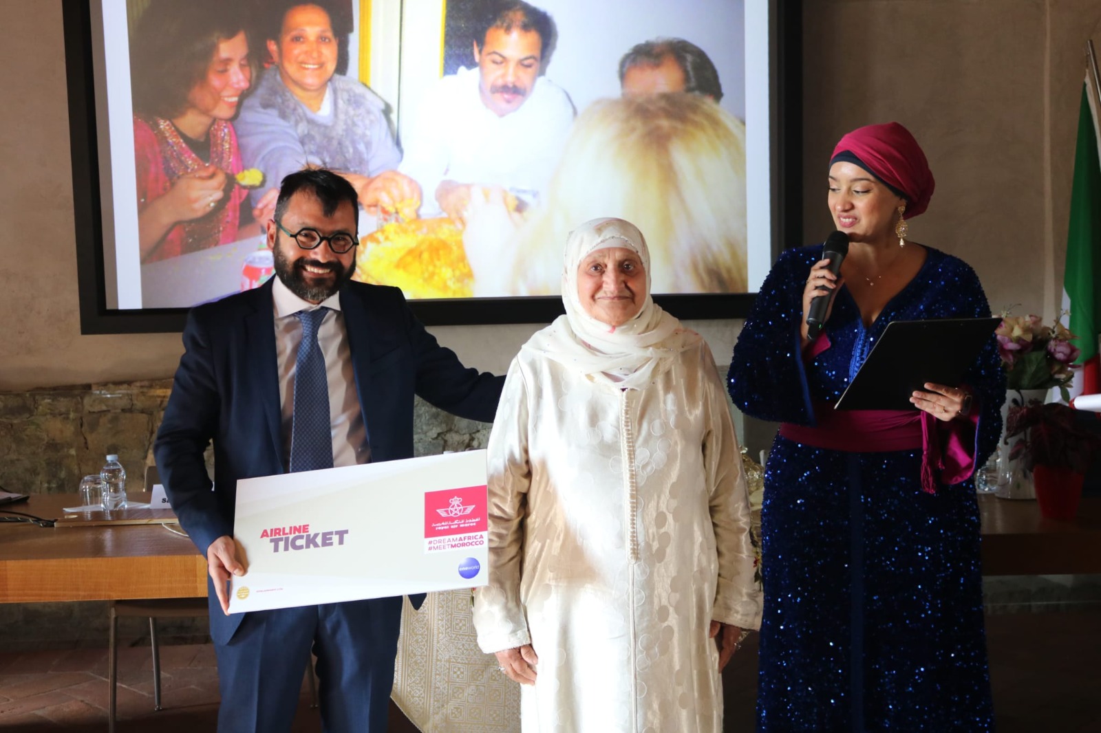 Un momento particolarmente sentito è stato quello delle premiazioni. Più che una singola fotografia, sono state premiate le immagini offerte da una persona, selezionate per il loro valore complessivo e simbolico. A distinguersi è stata la storia della loro autrice, una donna, in un’epoca in cui ad emigrare dal Marocco erano prevalentemente gli uomini. Le fotografie della vincitrice, la signora Chaibia, raccontano scene di vita familiare, momenti di lavoro e relazioni di amicizia con gli italiani. Il loro insieme ha trasmesso un messaggio forte: riconoscere il ruolo spesso invisibile, ma fondamentale, delle donne nella costruzione della memoria familiare e comunitaria.
