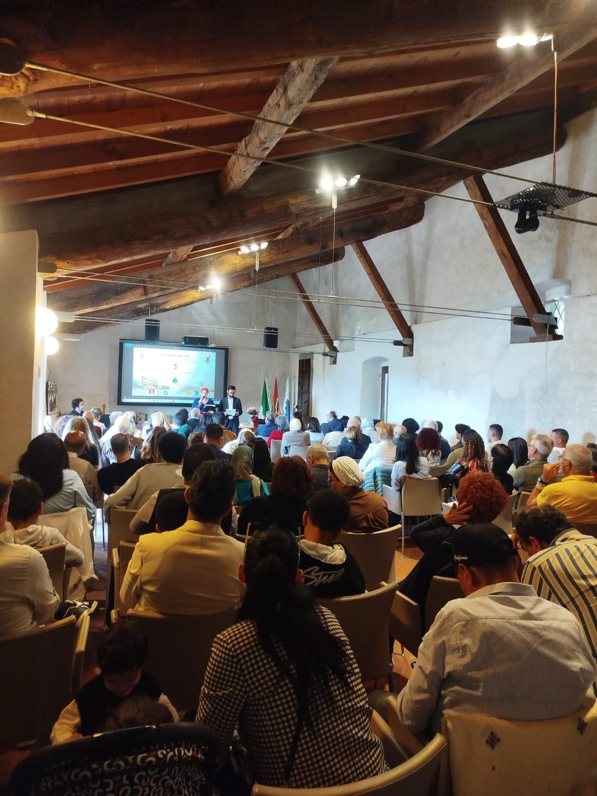 A rendere ancora più intensa l’atmosfera è stato anche un momento musicale particolarmente significativo: le note di L’Italiano Vero hanno risuonato tra le mura del Monastero, suscitando emozioni profonde. Per molti presenti, quella canzone rappresenta un simbolo della “belle époque” della prima generazione, un richiamo immediato agli anni dell’arrivo, dell’integrazione e dei primi passi in Italia. Anche questo momento ha toccato corde intime, commuovendo molti partecipanti.